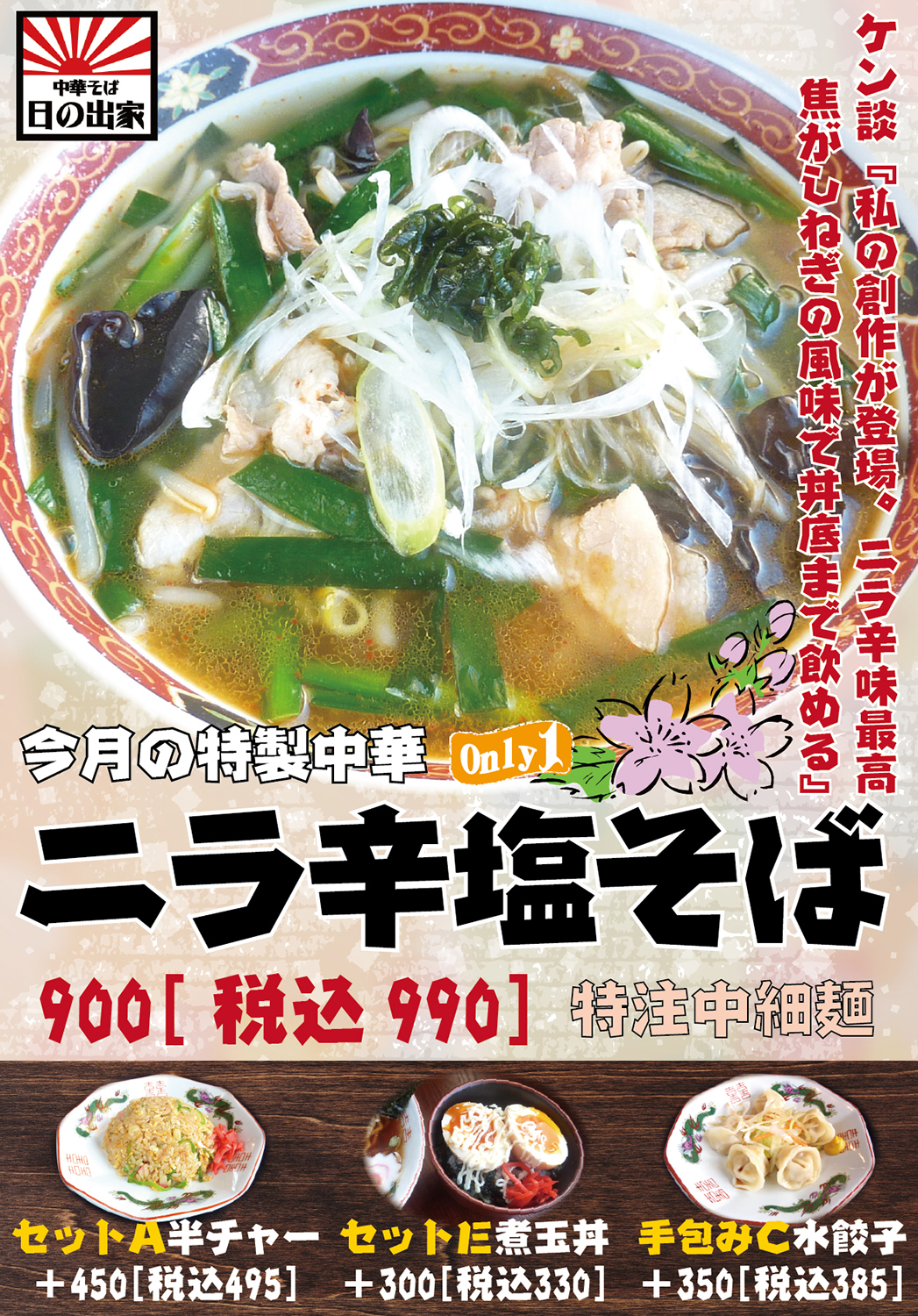 ニラ辛塩そば〓900(税込990)